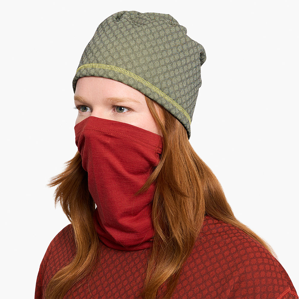 ciele athletics のなかでも最もソフトな Sorino | WS ファブリックを使った、寒い季節に対応するネック&フェイスプロテクション。メリノウールにシルクの快適さを組み合わせ、冬用ヘッドウェアやウェアの下に着けても素肌に心地よい仕上がりです。